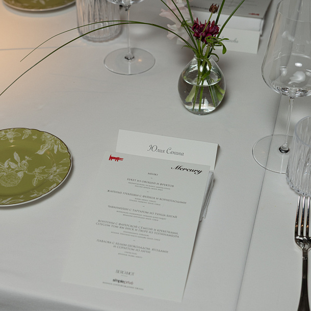 Торжественный ужин состоялся в ресторане авторской кухни Bergamot шефа Олега Перфилова и продюсера Алены Мельниковой. Ароматы Mercury Home Collection стали приятным подарком для гостей вечера.
